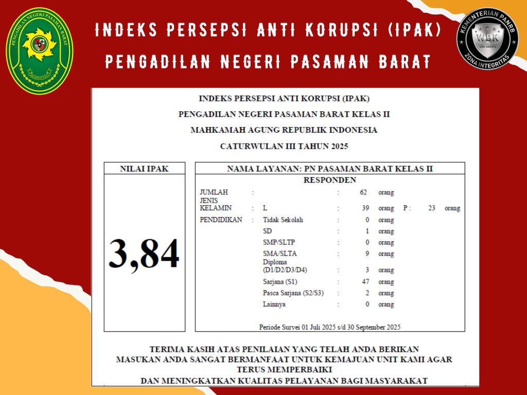 TERBARU Wisuda Sarjana Prodi Manajemen & Prodi Ilmu Hukum ITS Khatulistiwa Yayasan Pendidikan Pasaman Kunjungan Kerja Kepala Badan Narkotika Nasional Provinsi Sumatera Barat Kunjungan Kerja dan Silaturrahmi PTUN Padang Briefing Petugas PTSP Focus Discussion (FGD) RANPERMA terkait Implementasi Eksekusi Hak Asuh Anak Ujian Subtansi Bagi Panitera Muda Pengadilan Tinggi dan Panitera Muda Pengadilan Negeri di Lingkungan Badan Peradilan Umum Upacara Peringatan Hari Santri Nasional Pengumuman Mahkamah Agung RILangkah-langkah Akhir Tahun Anggaran 2025Munas Xxi Ikahi Tahun 2025Undangan Pembinaan Teknis Dan Administrasi YudisialUndangan Pembinaan Teknis Dan Administrasi YudisialUndangan Sosialisasi Fitur Standarisasi Dan Evaluasi Pengadaan Menu Pengadaan Barang Pada Aplikasi E-sadewa Pengumuman BadilumImbauan Pelaksanaan Simulasi Penanggulangan Bencana di Pengadilan Tinggi dan Pengadilan NegeriPemanggilan Peserta Pengganti Profile Asesment bagi Calon Pimpinan Pengadilan Negeri Klas II T.A. 2025Himbauan untuk mengikuti Seminar Nasional Program Pertukaran Pengetahuan YSEALI dengan topik " Sexual Harassment at Workplace 101 & How American Court Handle Harassment and Bullying in the Workplace" secara daringPemanggilan Peserta Profile Asesment bagi Calon Pimpinan Pengadilan Negeri Klas II T.A. 2025Rapat Koordinasi Penyelesaian Administrasi Pemberhentian, Status dan Kedudukan Sebagai Pegawai Negeri Sipil