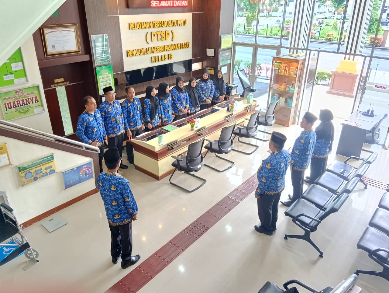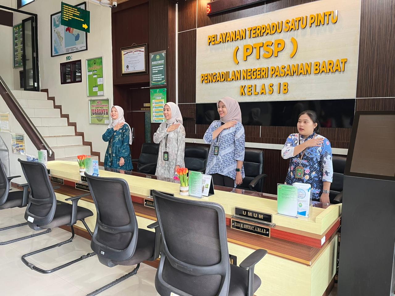 Bertempat di PTSP Pengadilan Negeri Pasaman Barat, Ibu Dian Sari, A.Md. memberi arahan untuk briefing petugas PTSP pada hari Jum’at tanggal 11 Oktober 2024. Briefing PTSP pagi ini bertujuan untuk pemberian arahan dan semangat pagi bagi petugas PTSP dalam memberikan pelayanan yang sepenuh hati. Briefing di akhiri dengan do’a pagi bersama dan yel yel PTSP Pengadilan Negeri Pasaman Barat.
