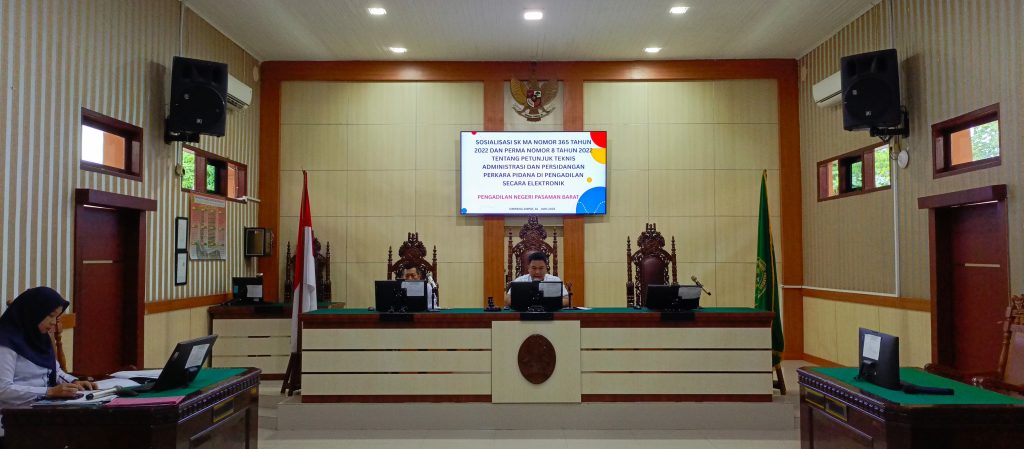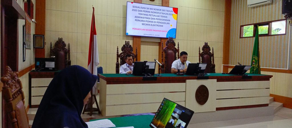 Pada hari ini, Senin tanggal 16 Juni 2025, telah dilaksanakan Sosialisasi SK KMA Nomor 365 Tahun 2022 dan PERMA Nomor 8 Tahun 2022 Tentang Petunjuk Teknis Administrasi dan Persidangan Perkara Pidana di Pengadilan Secara Elektronik oleh Ketua Pengadilan Negeri Pasaman Barat Bapak Ade Satriawan, S.H., M.H.