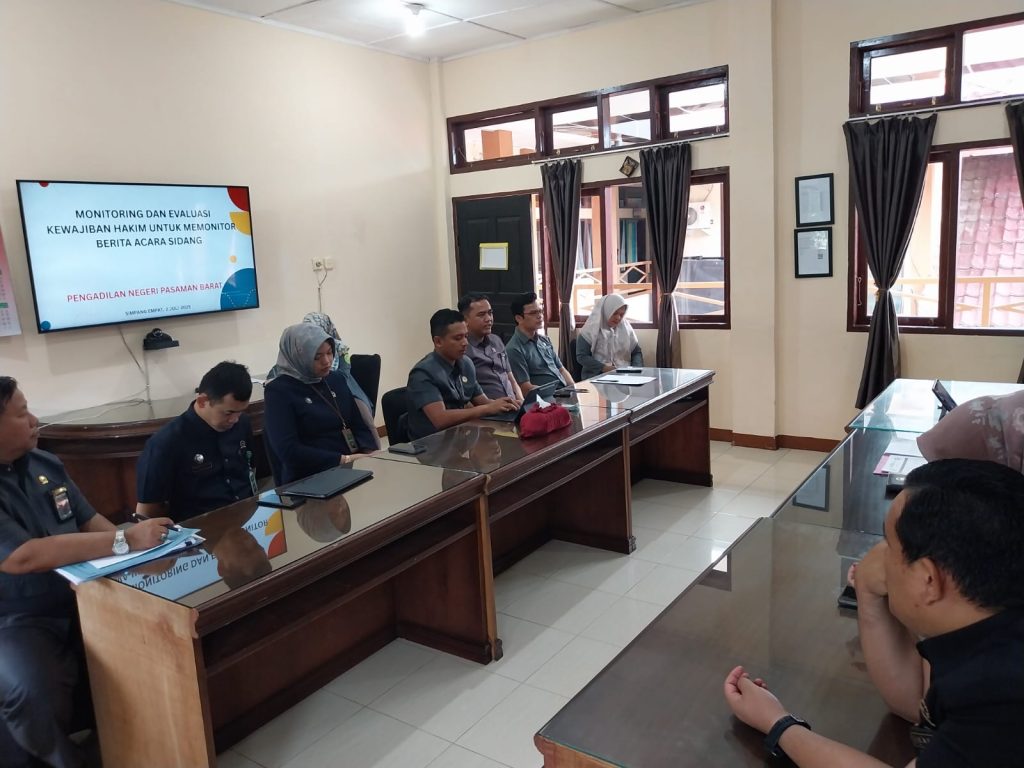 Pada hari ini, Rabu tanggal 2 Juli 2025, telah dilaksanakan Monitoring dan Evaluasi Kewajiban Hakim untuk Memonitor Berita Acara Sidang oleh Wakil Ketua Pengadilan Negeri Pasaman Barat Bapak Doni Prianto, S.H.