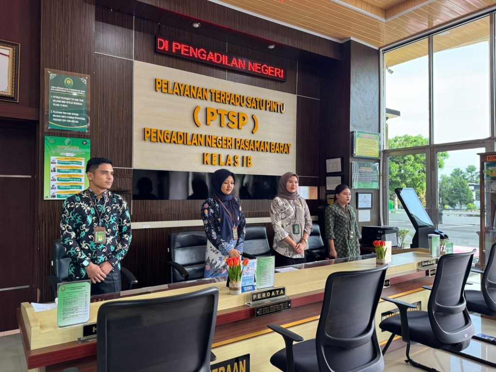 Pada hari ini, Kamis tanggal 3 Juli 2025 bertempat di PTSP Pengadilan Negeri Pasaman Barat telah dilaksanakan briefing petugas PTSP yang dipimpin oleh Panitera Muda Perdata Pengadilan Negeri Pasaman Barat Bapak Syafrimon, S.H.