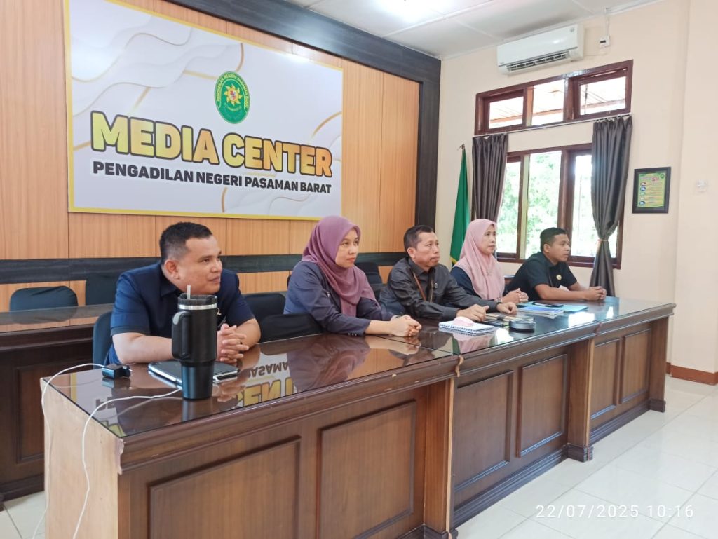 Pada hari ini, Selasa tanggal 22 Juli 2025, Wakil Ketua Pengadilan Negeri Pasaman Barat Bapak Doni Prianto, S.H. beserta Panitera, Sekretaris dan Hakim Pengadilan Negeri Pasaman Barat mengikuti Sosialisasi tentang Peluang dan Pemanfaatan Rumah Subsidi Pemerintah di Lingkungan Mahkamah Agung dan Badan Peradilan dibawahnya secara daring di ruang Media Center Pengadilan Negeri Pasaman Barat.