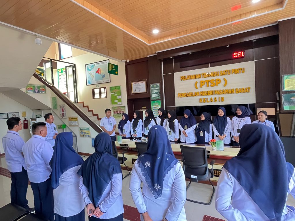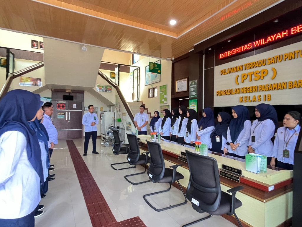 Pada hari ini Senin tanggal 28 Juli 2025, Bapak Imam Kharisma Makkawaru, S.H., M.H. (Hakim Pengawas PTSP) memimpin pelaksanaan briefing petugas PTSS sebagai kegiatan rutin sebelum memulai pelayanan.