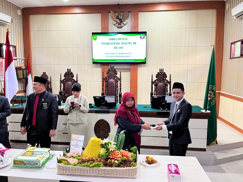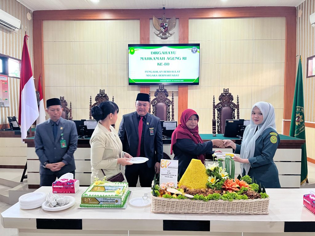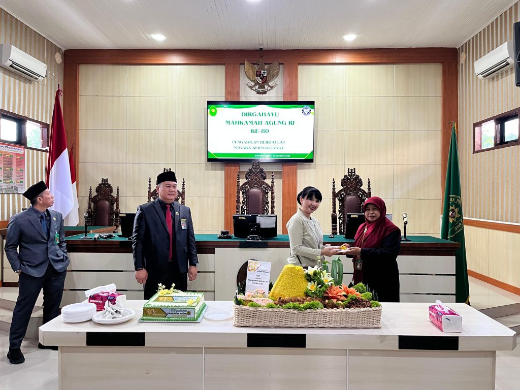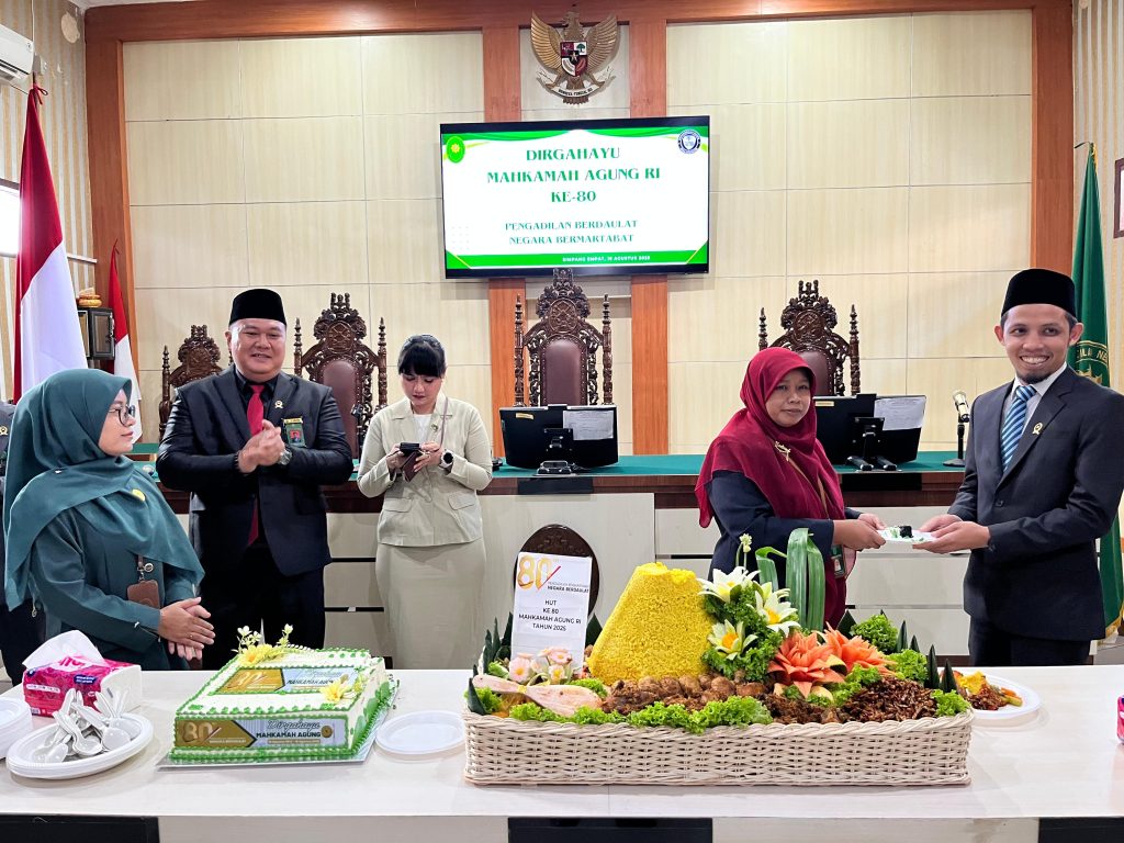 Bertempat di ruang sidang cakra Pengadilan Negeri Pasaman Barat, Ketua, Wakil, para Hakim dan Pegawai Pengadilan Negeri Pasaman Barat dan Pengadilan Agama Talu melaksanakan acara potong tumpeng dan kue dalam rangka Hari Ulang Tahun Mahkamah Agung ke-80. Acara ini dilaksanakan setelah upacara selesai