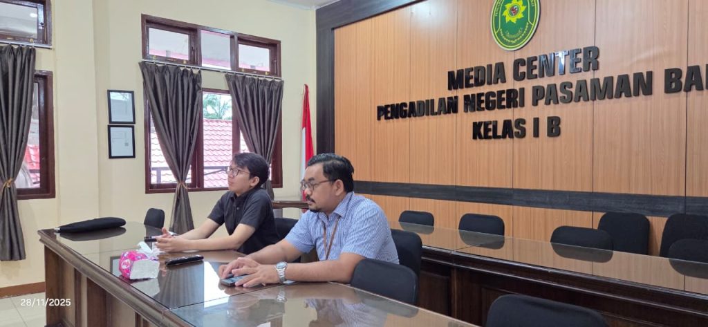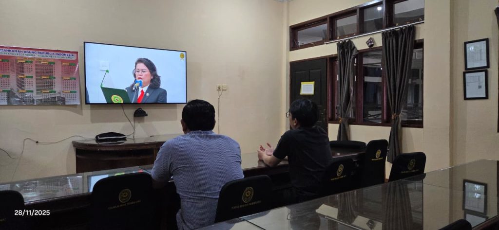 Pada hari ini, Jumat tanggal 28 November 2025 bertempat di Ruang Media Center Pengadilan Negeri Pasaman Barat, Hakim Pengadilan Negeri Pasaman Barat Bapak Dhiyaur Rifki, S.H. dan Bapak Fransiskus Sinurat, S.H. mengikuti Live Streaming Wisuda Purnabakti Ketua Pengadilan Tinggi Bandung melalui kanal Youtube Mahkamah Agung RI.