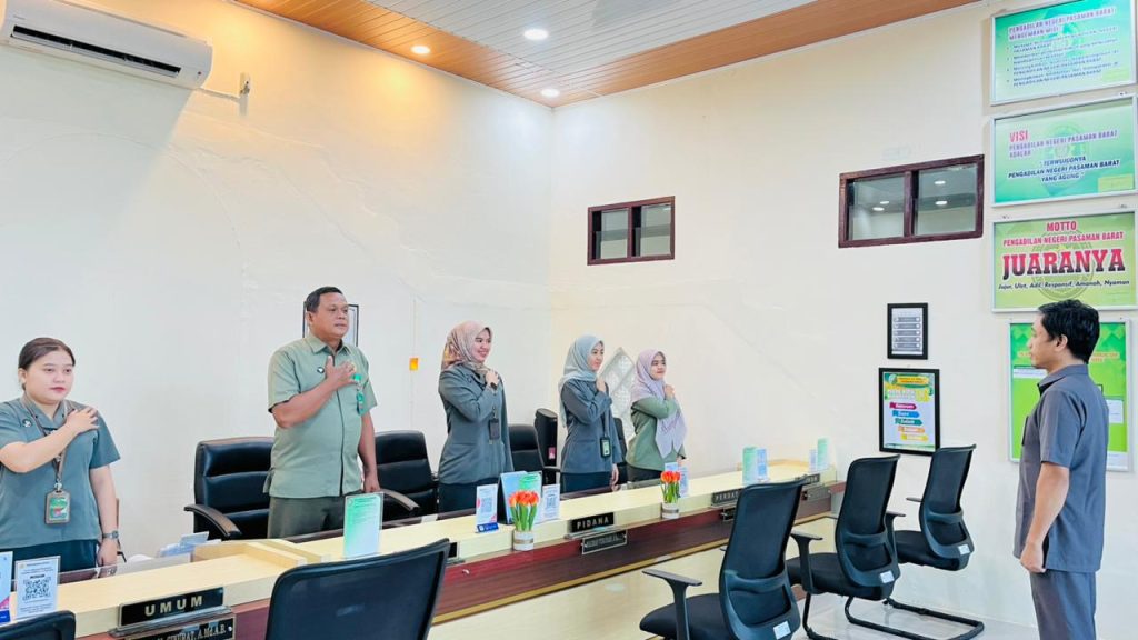 Pada hari ini, Rabu tanggal 04 Maret 2026 bertempat di PTSP Pengadilan Negeri Pasaman Barat telah dilaksanakan Briefing petugas PTSP yang dipimpin oleh Panitera Muda Hukum Pengadilan Negeri Pasaman Barat Bapak Guswandi, S.H.