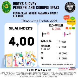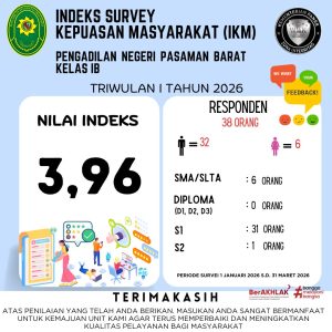 Hallo Sobat Pengadilan! 🙏🏻 Selasa, 03 Maret 2026 telah dilaksanakan kegiatan Zoom Pembinaan Oleh Direktorat Jenderal Badan Peradilan Umum Mahkamah Agung Republik Indonesia, yang diadakan di Ruang Media Center Pasaman Barat. Kegiatan diikuti oleh Ketua (Bapak Ade Satriawan, S.H., M.H.) dan Penitera (Ibu Irma Hablin Harahap, S.H., M.H.) Pengadilan Negeri Pasaman Barat. (k)